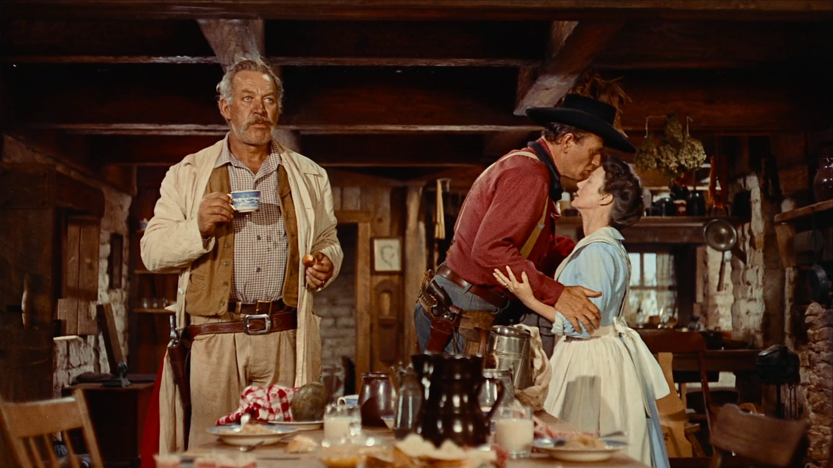 By the time The Searchers had reached theaters, Ford’s style was considered old fashioned. And in many ways, it was ornate for the time. Even shooting on the 1.85 widescreen VistaVision format, he left many of his compositions loose, allowing almost entire bodies to be on screen, and populating all edges with characters and artifacts. Just before the great departure scene that set this whole essay into motion, the Texas Rangers arrive at the Edwards house like a can of worms in a glass case, bouncing off every-which wall, filling the room with noise and motion. It is that beautiful, Fordian ballet of mise-en-scene. They simply do not make movies like it anymore.